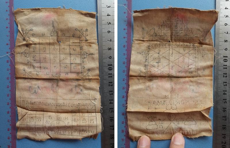ผ้ายันต์เก่า ไม่ทราบที่ ไม่รู้ปี มีรอยจารหมึก เก่าจริง ตัวจริง..